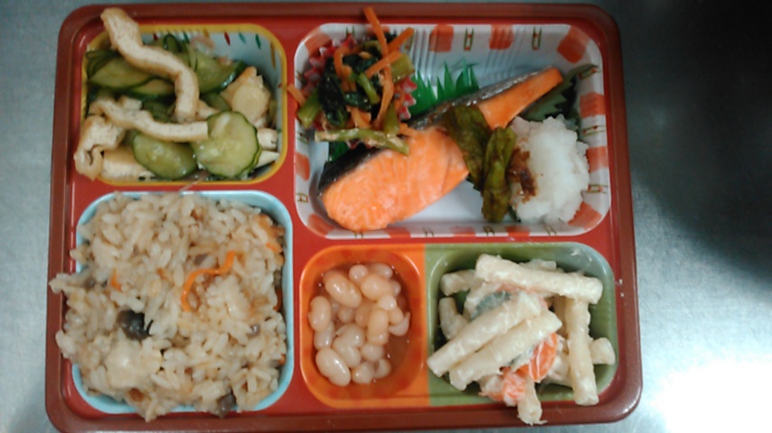 炊き込みご飯と鮭の塩焼き